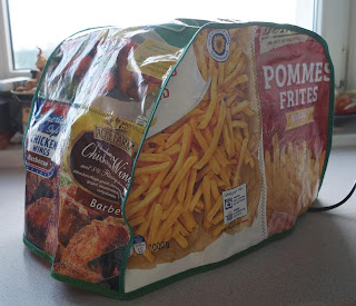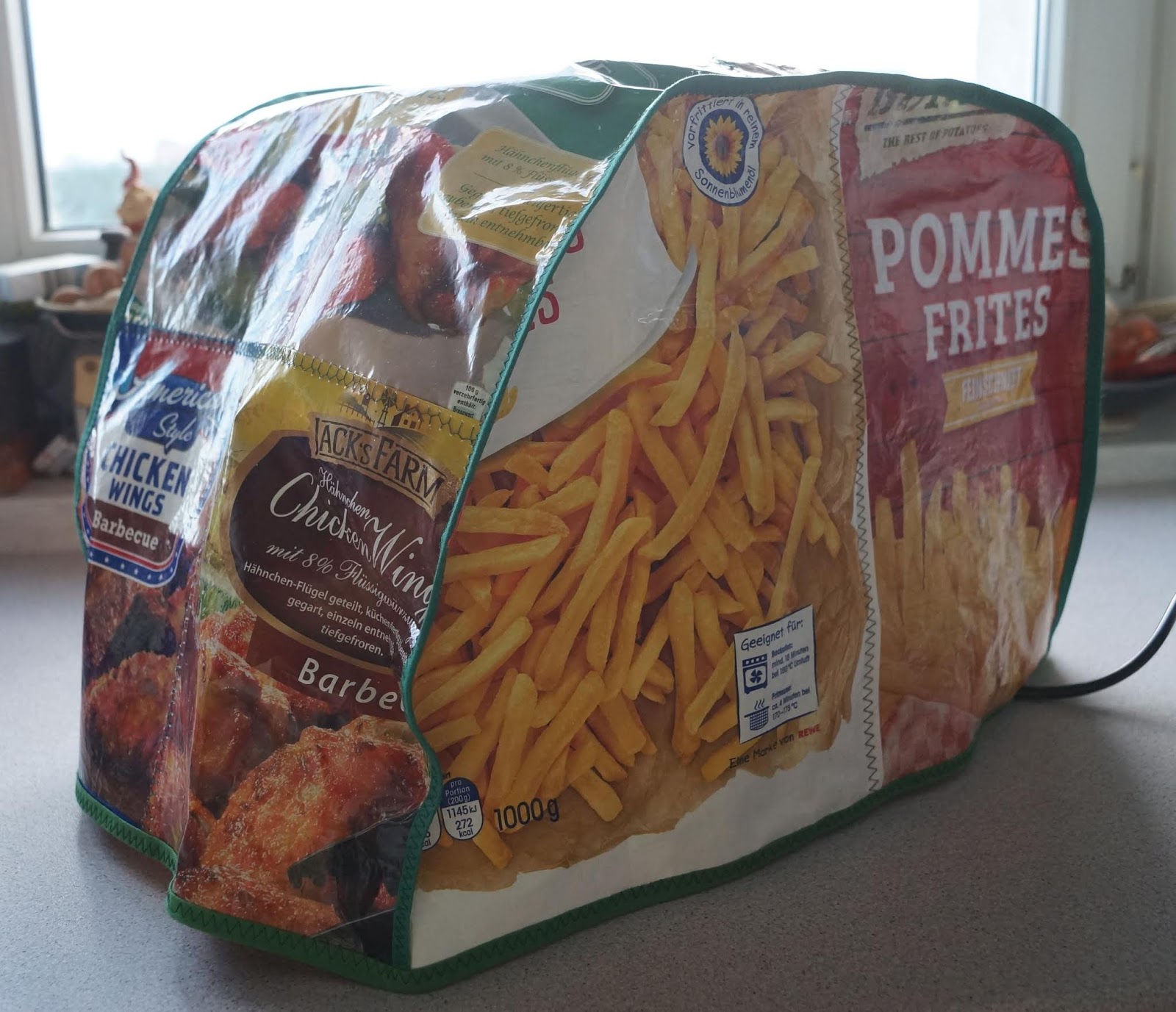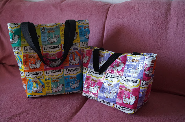 Das Vorbereiten zum Nähen der Tasche gestaltete sich nicht ganz einfach. Die Tüten waren schlecht auf eine Größe zuzuschneiden, da sie unterschiedlich zuzammengeschweißt waren.